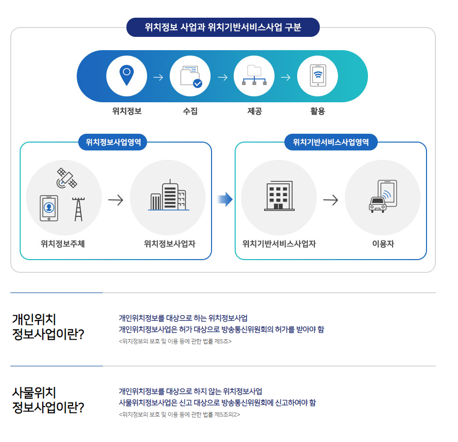 거기에서 세분화되어 개인 위치정보와 사물위치정보로 나뉘는데